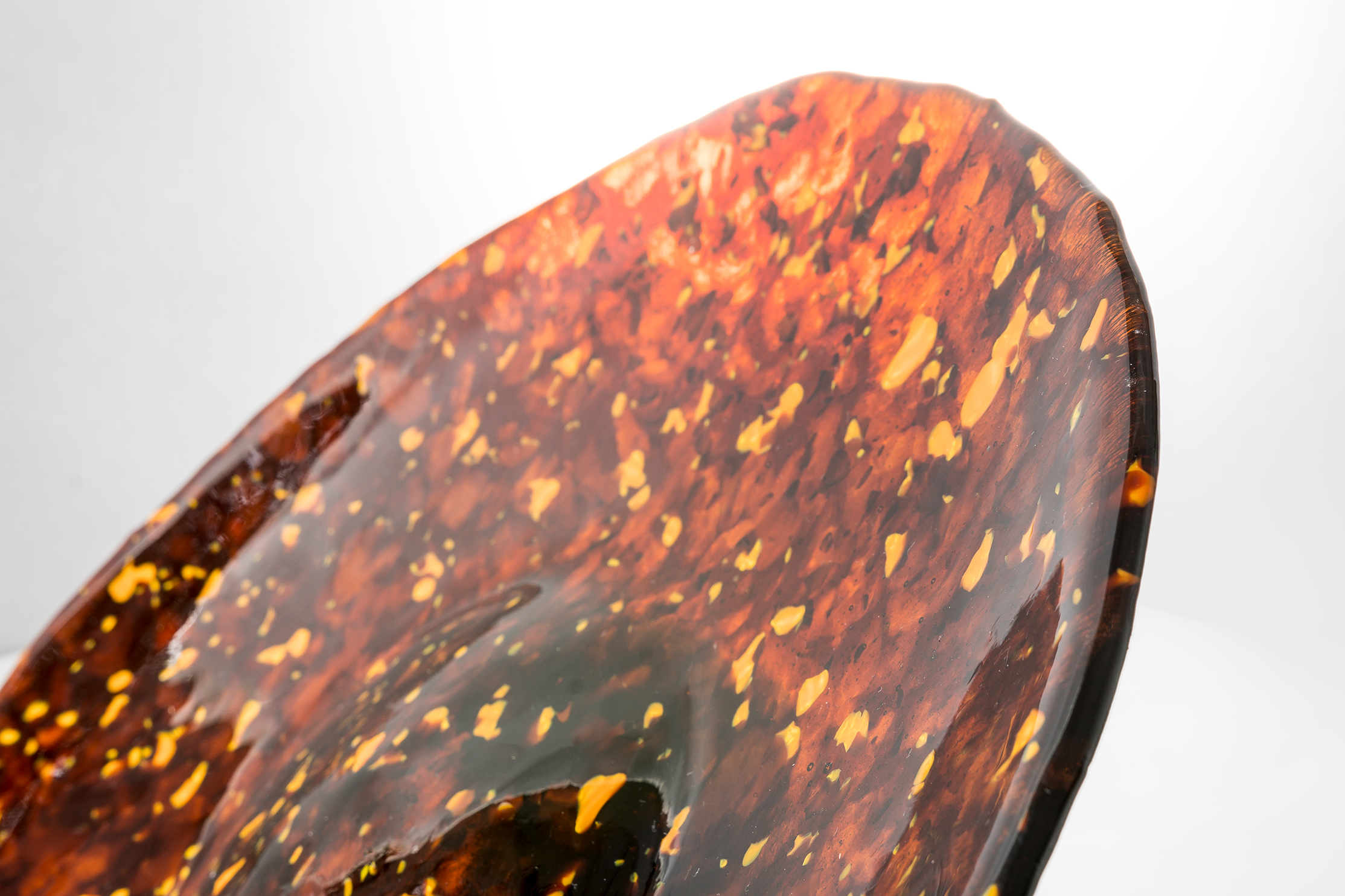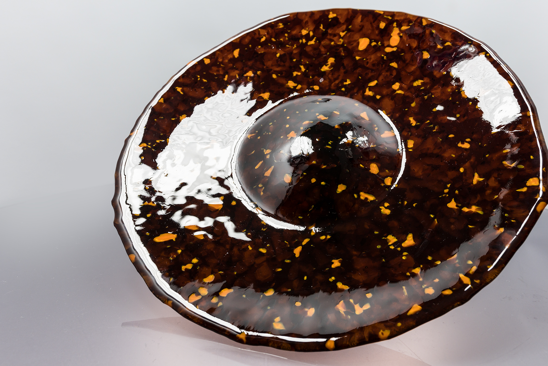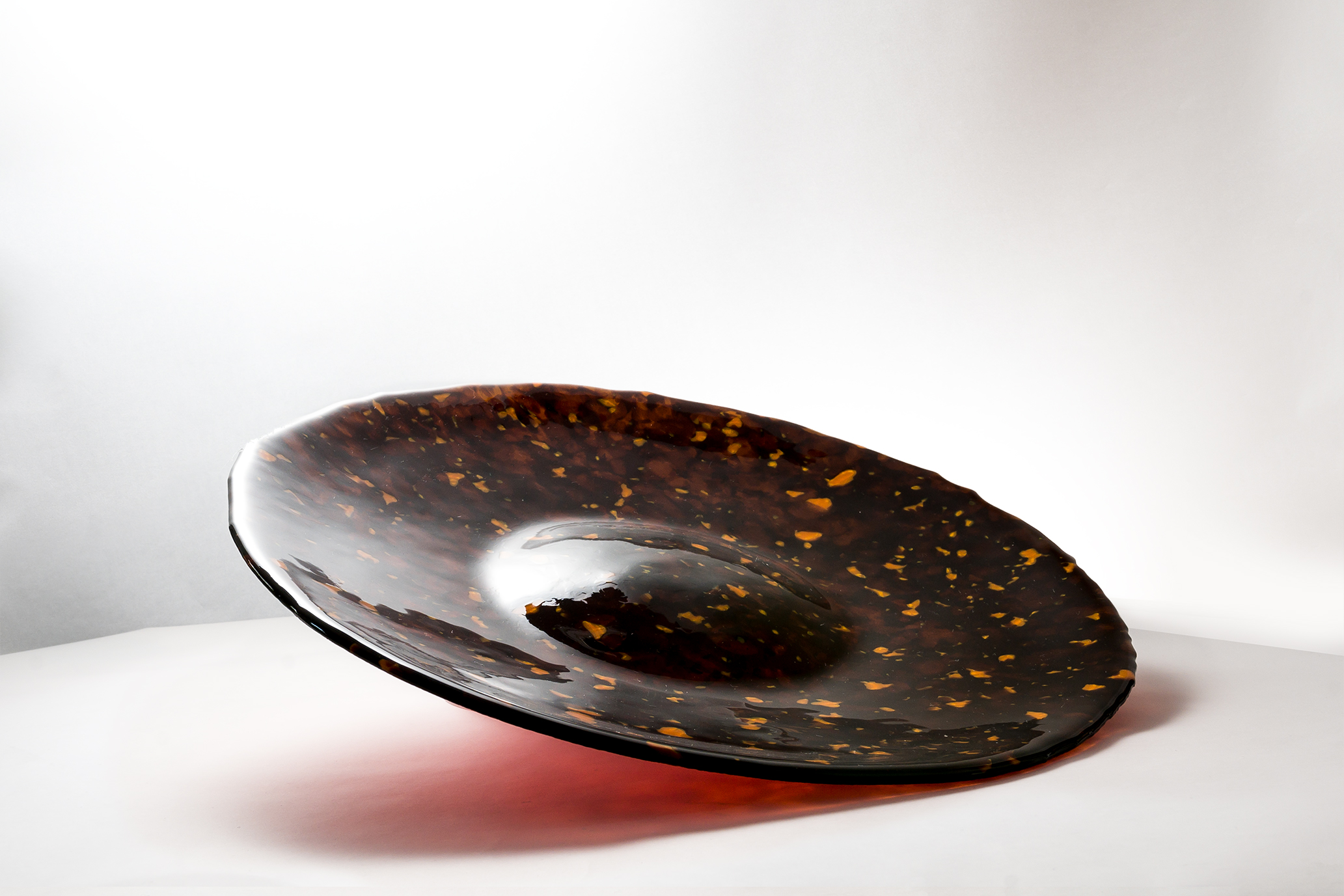 SLU Platter to projekt oparty na recyklingowym użyciu szkła, transformujący pozostałość produkcyjną w unikatowy obiekt użytkowy. Wykonana w technologii piecowej, patera o masie 3 kg powstaje w dwóch etapach: zgrzewania szkła oraz grawitacyjnego formowania (slumpingu). Proces ten utrwala kształt i nadaje organiczną linię ugięcia pod własnym ciężarem. Każdy egzemplarz (śr. 40 cm) cechuje unikatowa struktura powierzchni oraz wzoru, będąca bezpośrednim i szczerym zapisem pochodzenia surowca wtórnego.