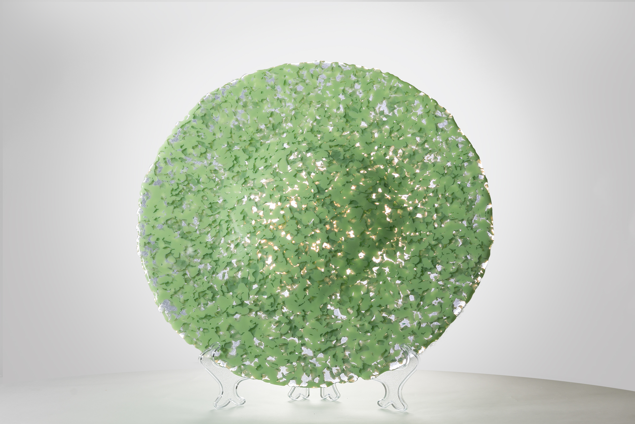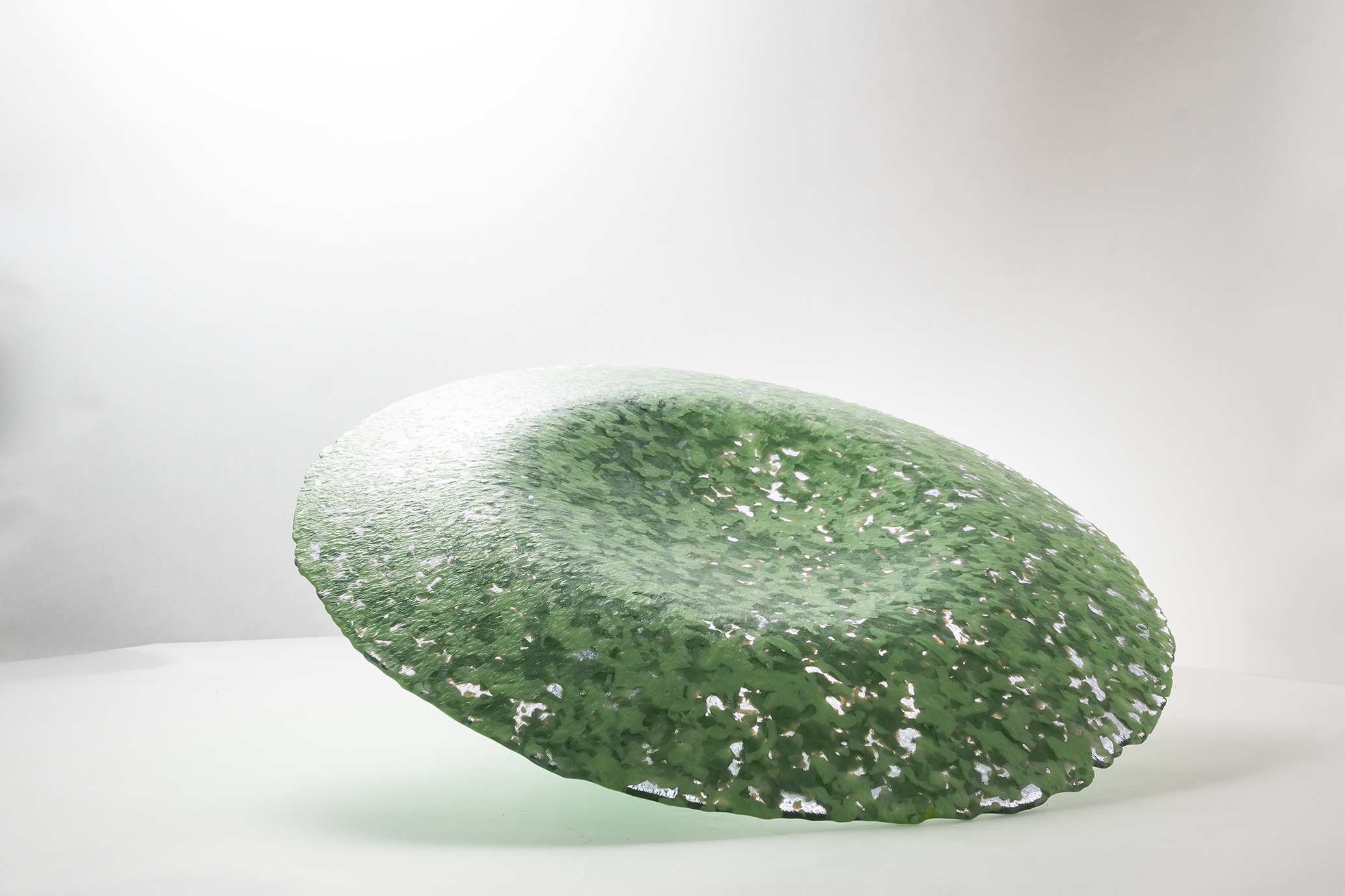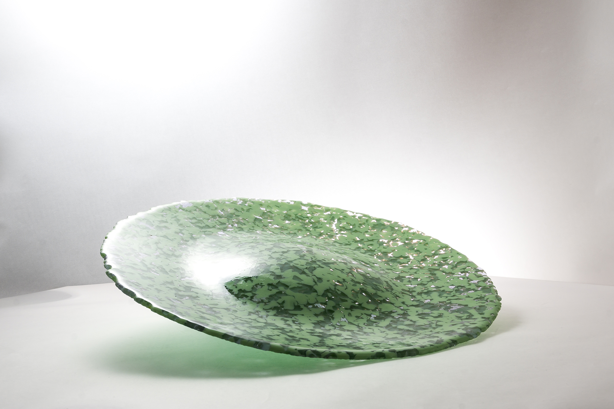 SLU Platter to projekt oparty na recyklingowym użyciu szkła, transformujący pozostałość produkcyjną w unikatowy obiekt użytkowy. Wykonana w technologii piecowej, patera o masie 3 kg powstaje w dwóch etapach: zgrzewania szkła oraz grawitacyjnego formowania (slumpingu). Proces ten utrwala kształt i nadaje organiczną linię ugięcia pod własnym ciężarem. Każdy egzemplarz (śr. 40 cm) cechuje unikatowa struktura powierzchni oraz wzoru, będąca bezpośrednim i szczerym zapisem pochodzenia surowca wtórnego.