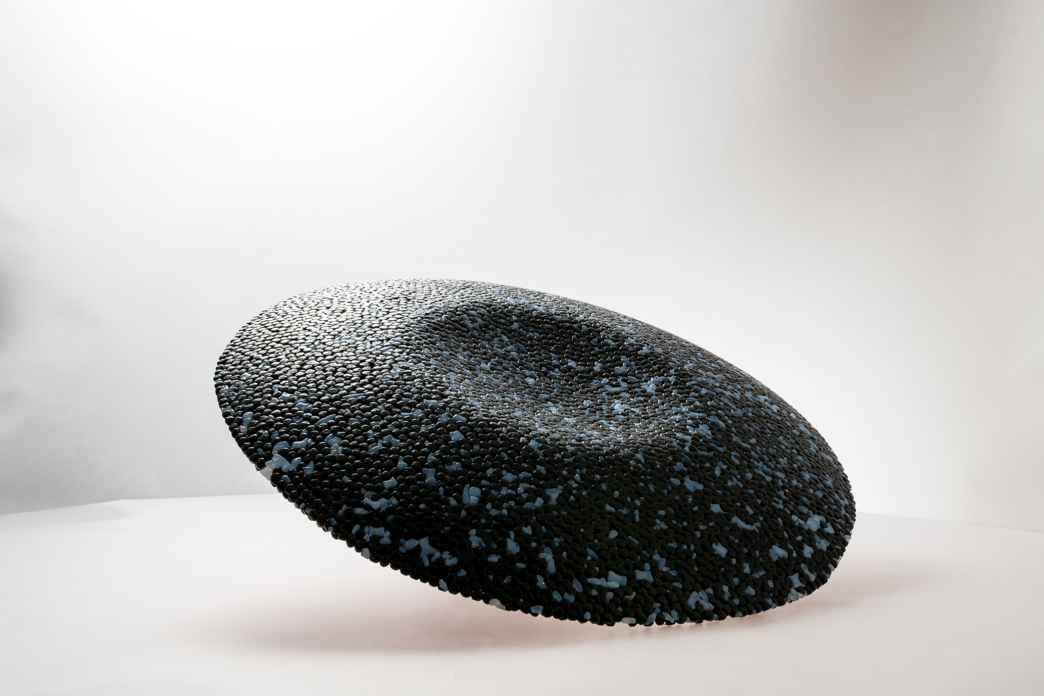 SLU Platter to projekt oparty na recyklingowym użyciu szkła, transformujący pozostałość produkcyjną w unikatowy obiekt użytkowy. Wykonana w technologii piecowej, patera o masie 3 kg powstaje w dwóch etapach: zgrzewania szkła oraz grawitacyjnego formowania (slumpingu). Proces ten utrwala kształt i nadaje organiczną linię ugięcia pod własnym ciężarem. Każdy egzemplarz (śr. 40 cm) cechuje unikatowa struktura powierzchni oraz wzoru, będąca bezpośrednim i szczerym zapisem pochodzenia surowca wtórnego.